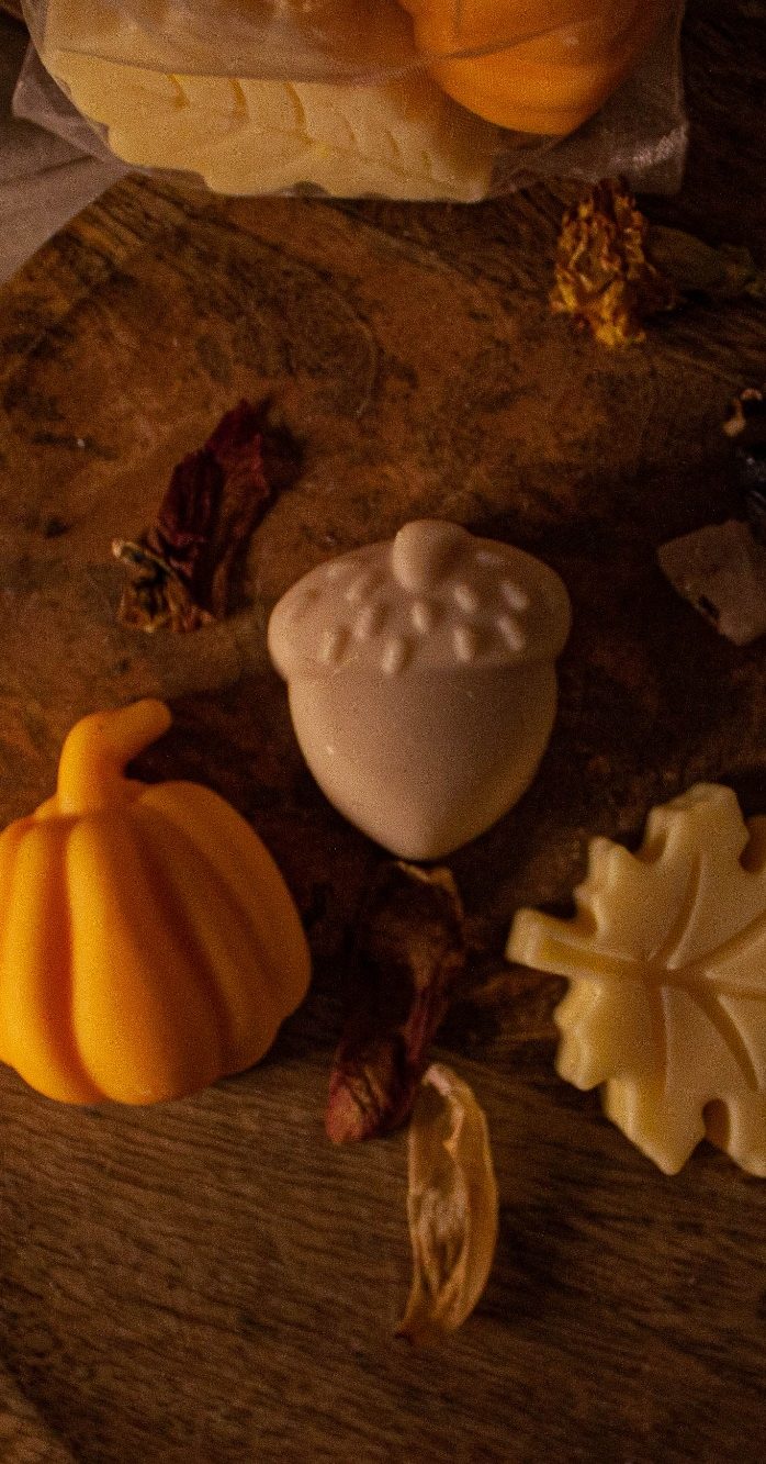 Cire de soja naturelle, parfums de Grasse automnaux (bois de santal, pumpkin spice, vanille épicée)